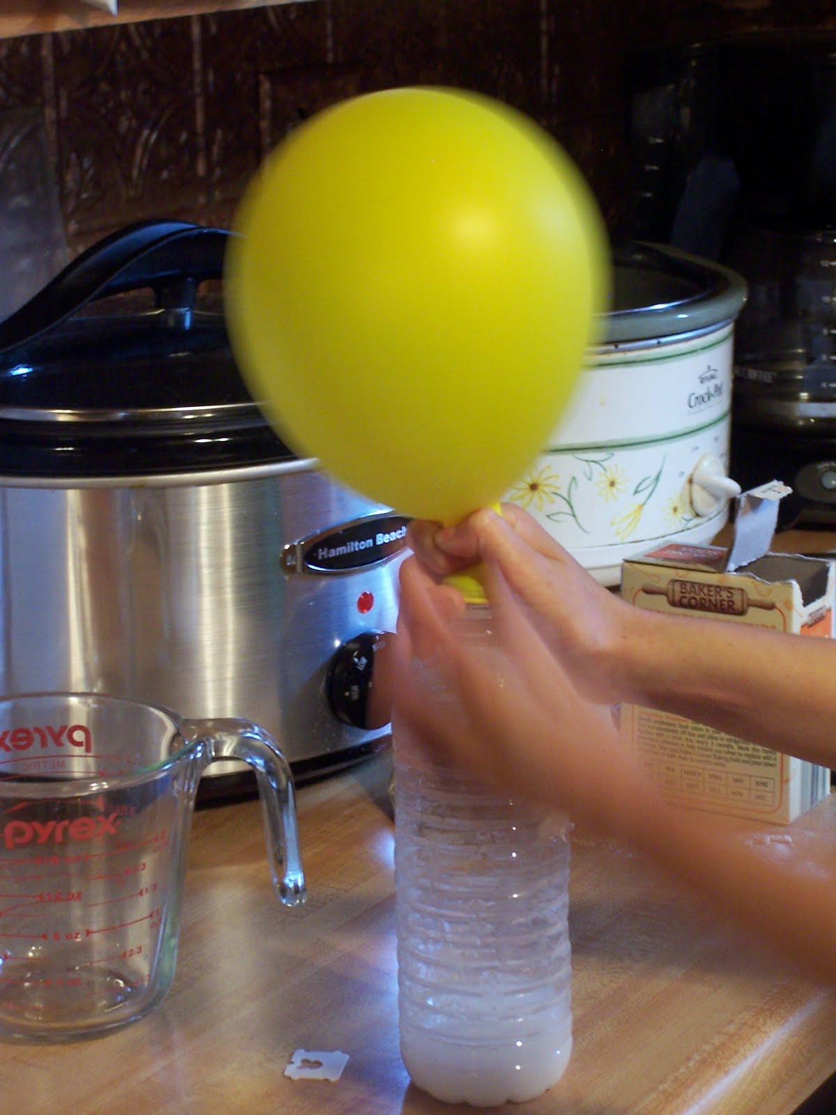 5. Shake the balloon so that the baking soda falls down into the bottle.